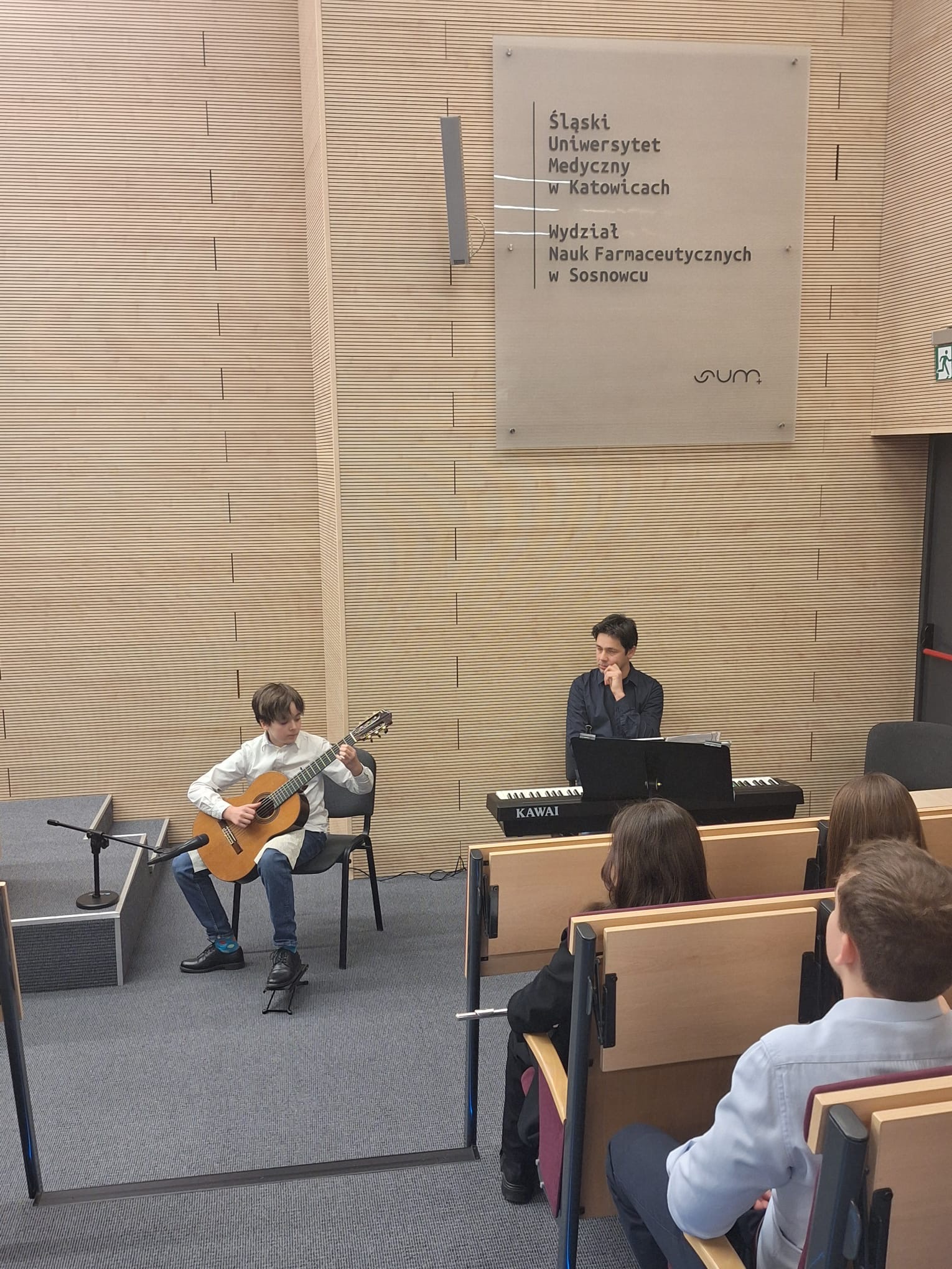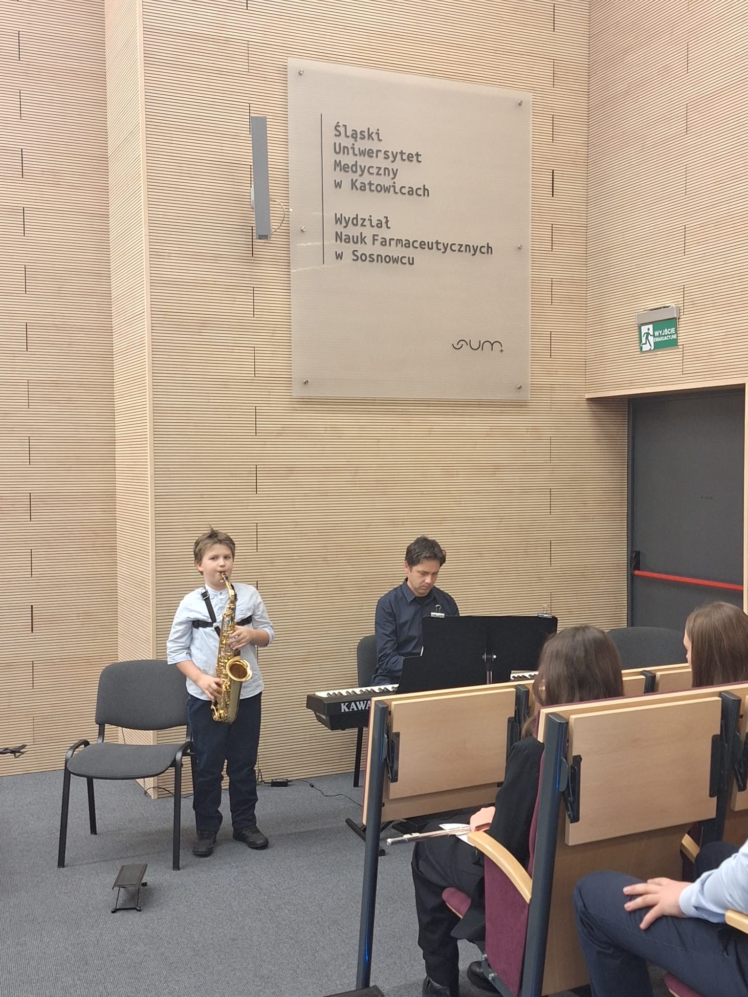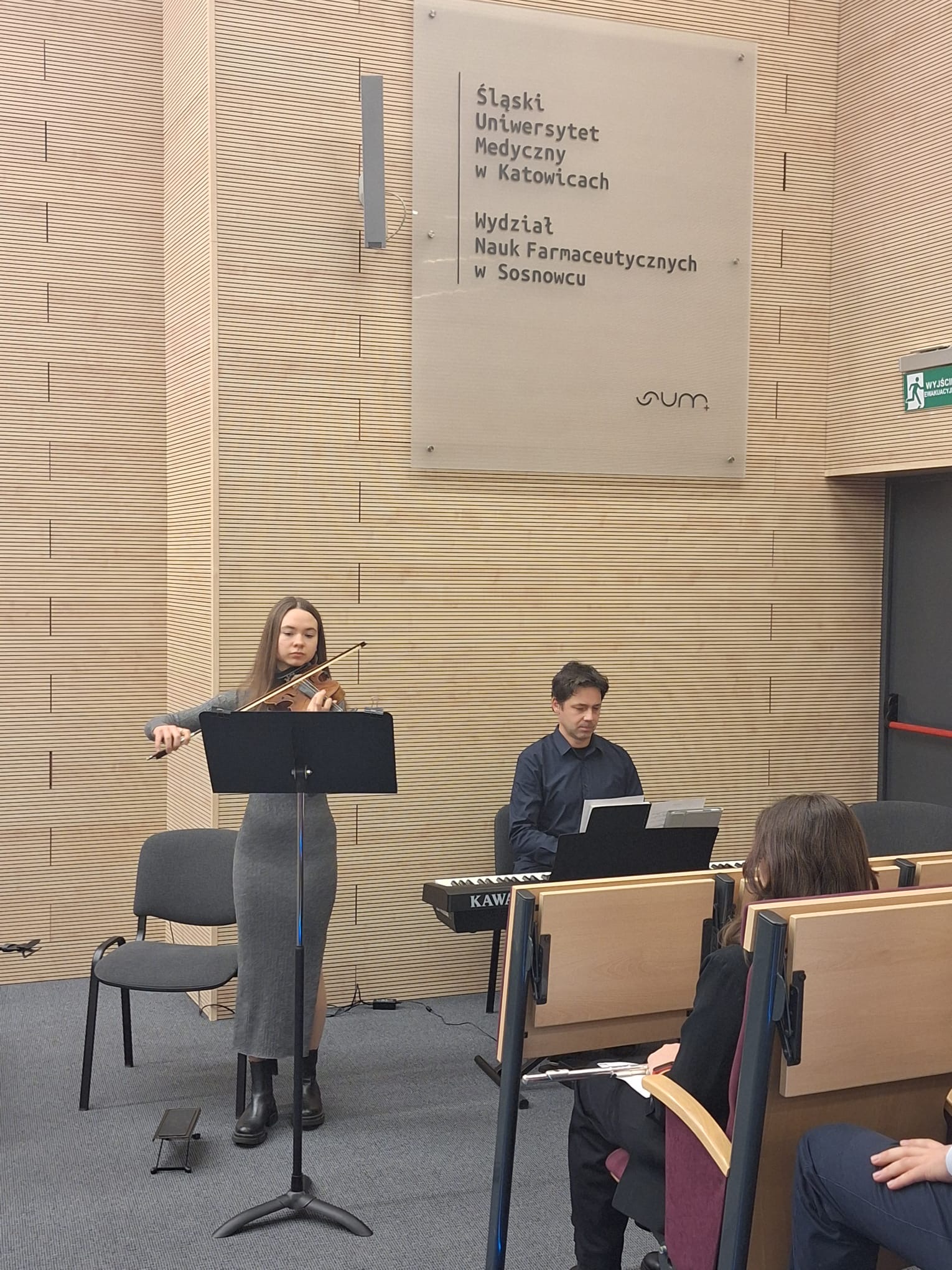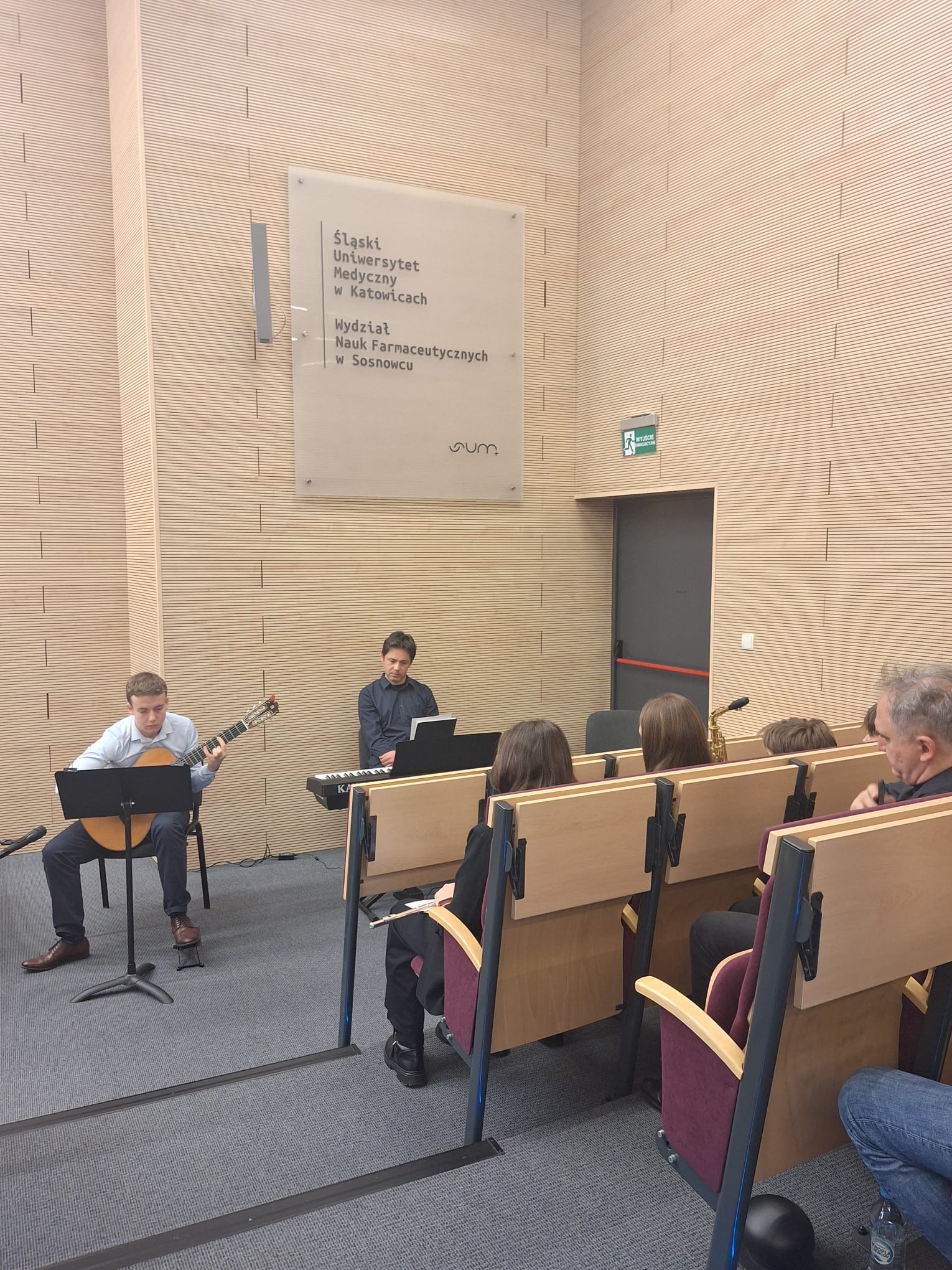 Następnie wysłuchaliśmy koncertu przygotowanego przez Uczniów i Nauczycieli z Zespołu Szkół Muzycznych w Sosnowcu, a po koncercie na Seniorów czekał słodki poczęstunek, książki zakupione z dotacji z Urzędu Miasta Sosnowiec oraz przeglądy lekowe przygotowane przez Farmaceutów ze Śląskiej Izby Aptekarskiej.