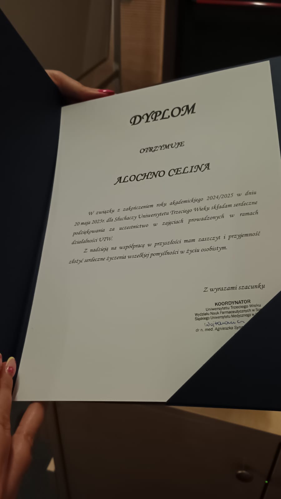 S20 maja 2025 roku odbyła się uroczystość zakończenia roku akademickiego 2024/2025 Uniwersytetu Trzeciego Wieku Wydziału Nauk Farmaceutycznych w Sosnowcu.