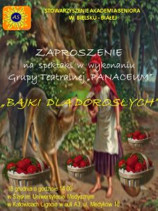 O godzinie 14:00 grupa teatralna PANACEUM zaprezentuje spektakl pt. Bajki dla dorosłych, natomiast później zapraszamy na wykład Pana prof. dr hab. n. med. Rafała Młynarskiego pt. „Rezonans magnetyczny serca”.
